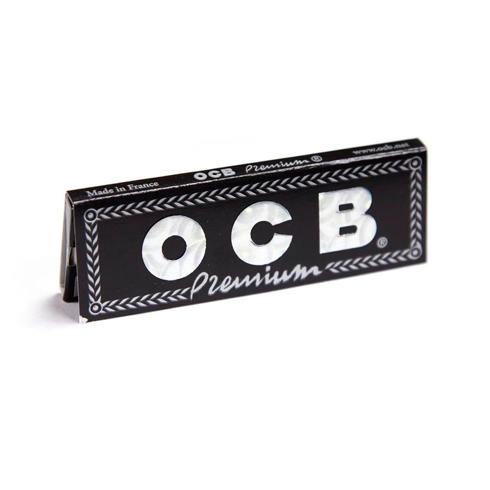 OCB Premium black rolling papers come in a pack of 50 and are 1¼“ long. Made with all-natural acacia gum and packaged in a black booklet.